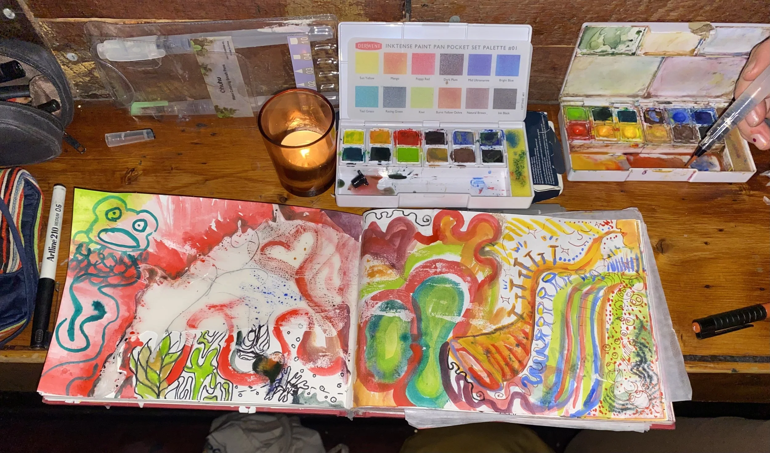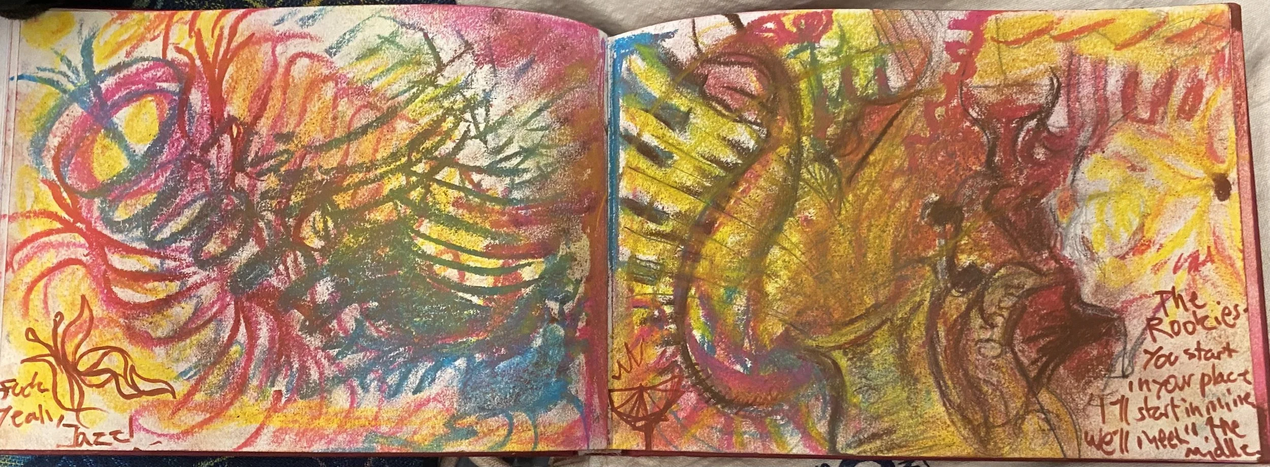 These artworks were done whilst listening to live Jazz at the Rooks Return in Fitzroy. Made in collaboration with friends and/or strangers. These are mediums of further expression and connection to the music and the energy of the room. They are a lot of fun…